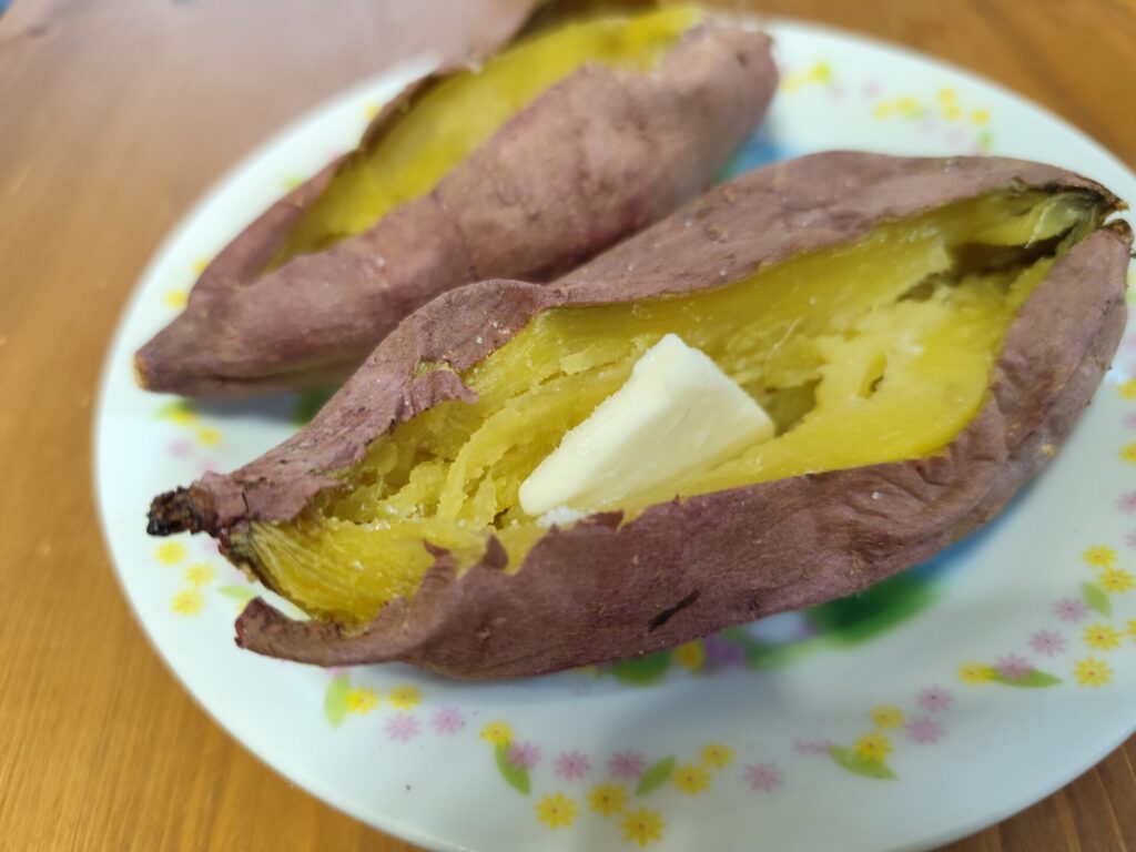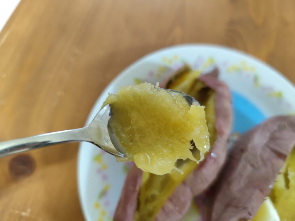 冷たい焼き芋はレジスタントスターチがうんたらかんたらで太りにくいそうですね!ダイエッターのおやつにピッタリです。