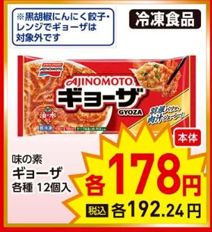 通常でも税込213円の餃子なら、142ポイントで買えるので破格です!我が家では毎月2~3パック買ってます。