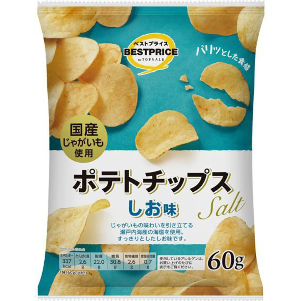 水は2ℓで1本あたり約75円で500mlよりも安いし、ポテチは味が3種類あり、安心の湖池屋製です。