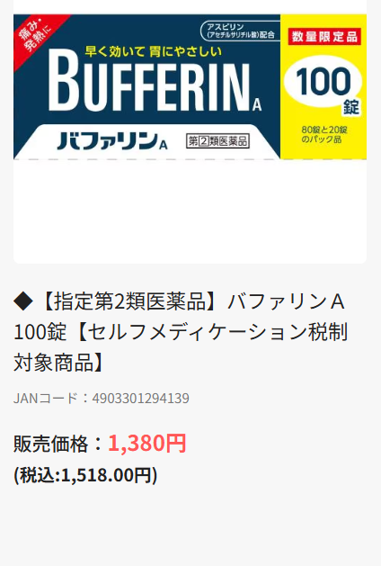 全ての薬の値段を把握しているわけではありませんが、いくつかのドラッグストアでバファリンとイブとロキソニンを比較したところ、金額に大きな差はありませんでした。各ドラッグストアでアプリ割引や特売などがありますので、それぞれチェックして納得出来る金額で買えたら良いですよね。