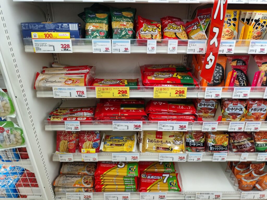 パスタそのものは最安を求めてヤオコーで1㎏税抜198円の時に買いますが、私が行くウエルシアには有名なバリラの取り扱いもあります。パスタにもこだわりたい方にはオススメです。