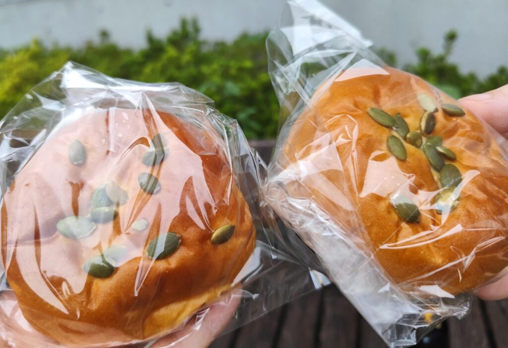 かぼちゃの種がたっぷりのビジュアルがたまらないかぼちゃクリームパン。