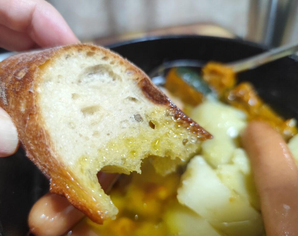 バゲットが美味しそうで買ってしまったので、夜は予定じゃなかったけどアヒージョにしました。