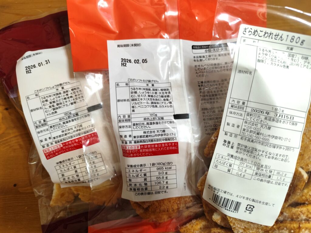 おせんべいは日持ちもするし、この物価高でお菓子類もどんどん値段が上がっていますので、買い溜めにもオススメです。