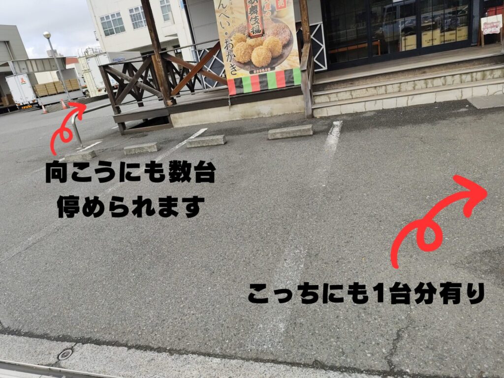 『天乃屋 東京工場直売店』の駐車場は、お店の前に3台と、横に数台停める事が出来ます。