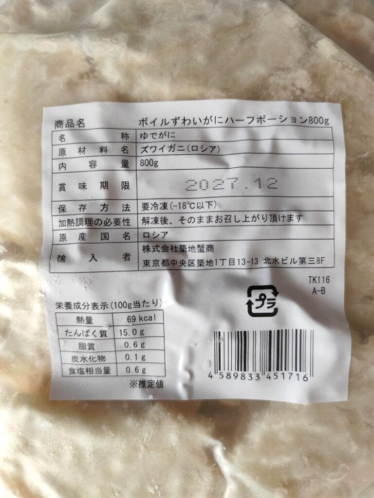 ロピアにはたくさん冷凍のカニがあって、以前から買ってみたいと思っていました。