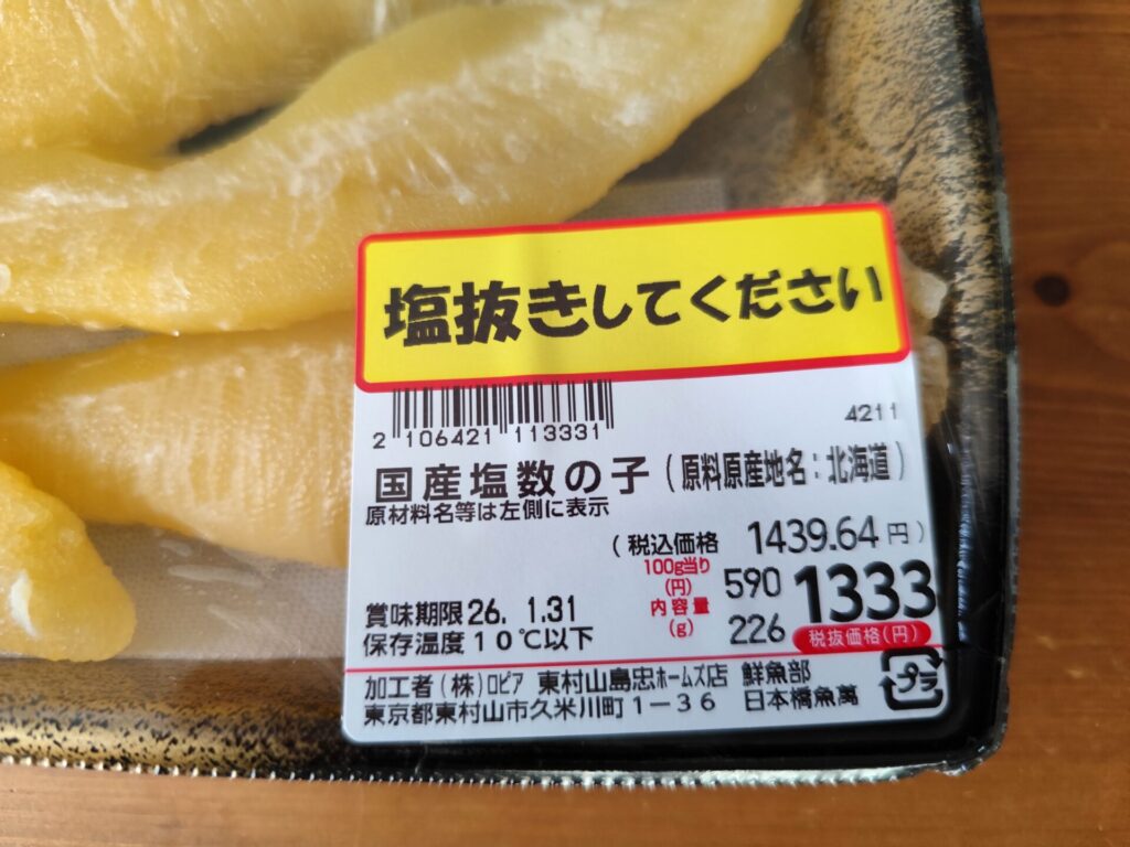 先日、テレビで「最近の数の子はやっすい粒々を固めてそれっぽい形にしたやつなんですよ~」とやっていましたが、ロピアで売っていた数の子は全部本物の数の子でした。