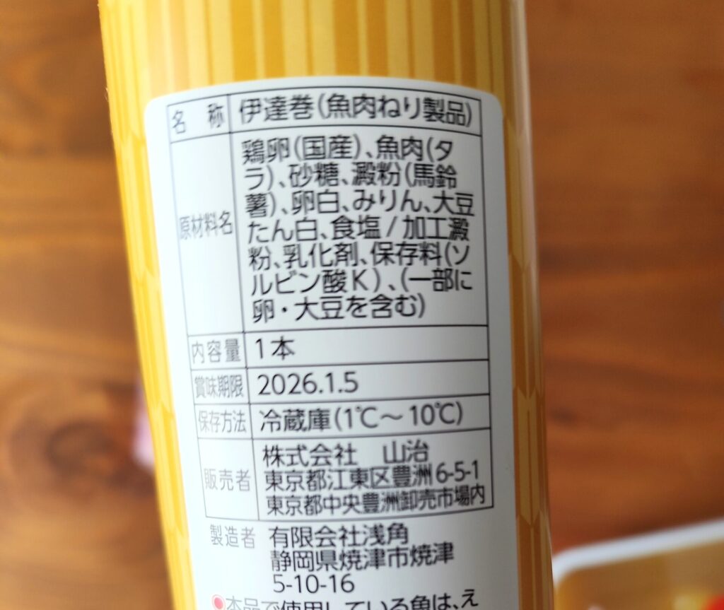 『山治』という豊洲の会社のもののようで、同じ山治の伊達巻も一緒に並んでいました。