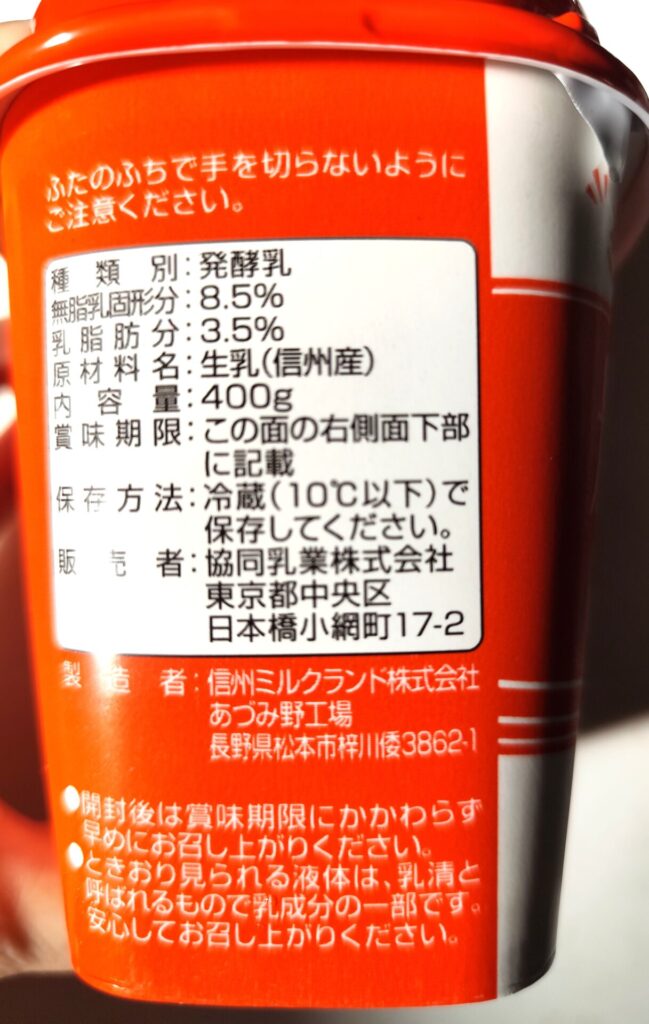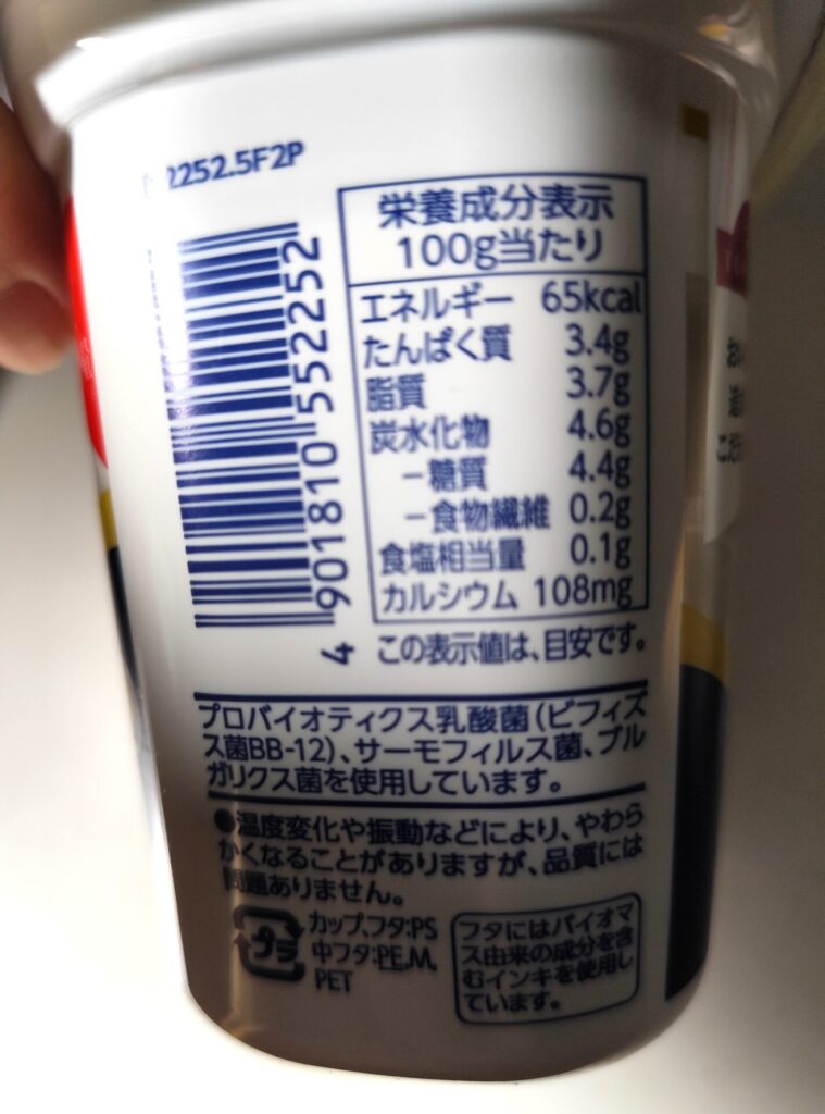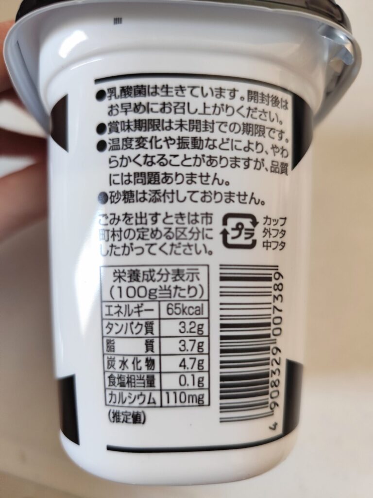 栄養成分やカロリーなんかは、『小岩井生乳100%ヨーグルト』とそんなに変わらないです。