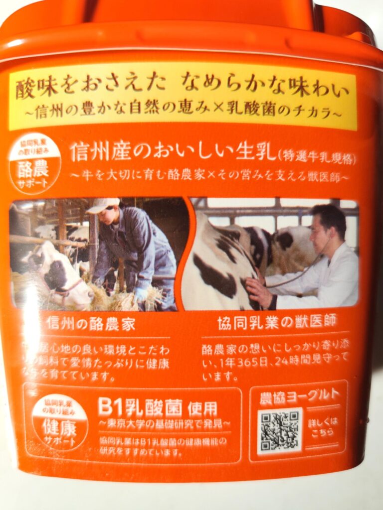 栄養成分は他の生乳100%ヨーグルトとほとんど一緒ですが、乳酸菌がビフィズス菌BB-12ではなく『B1乳酸菌』を使用しているそう。
