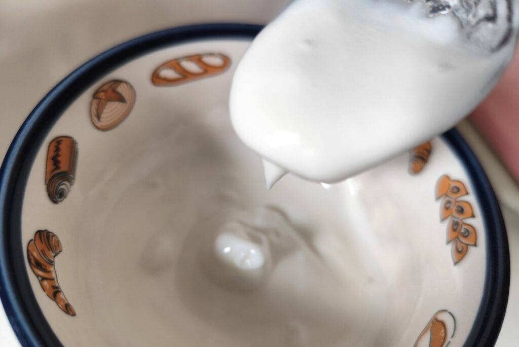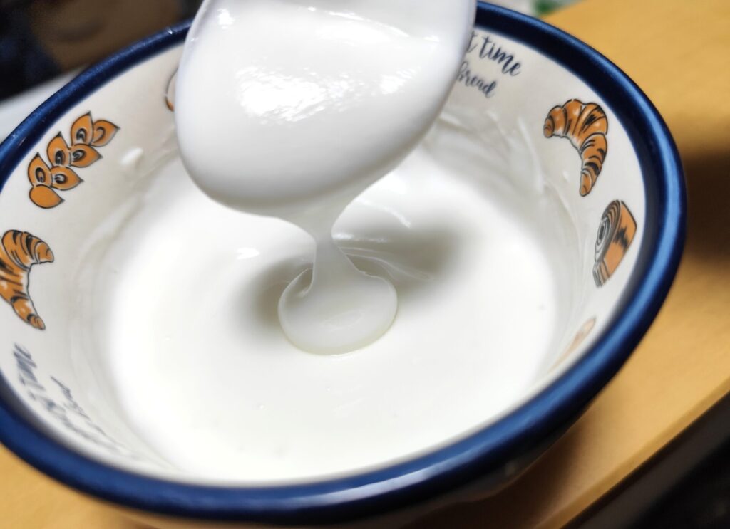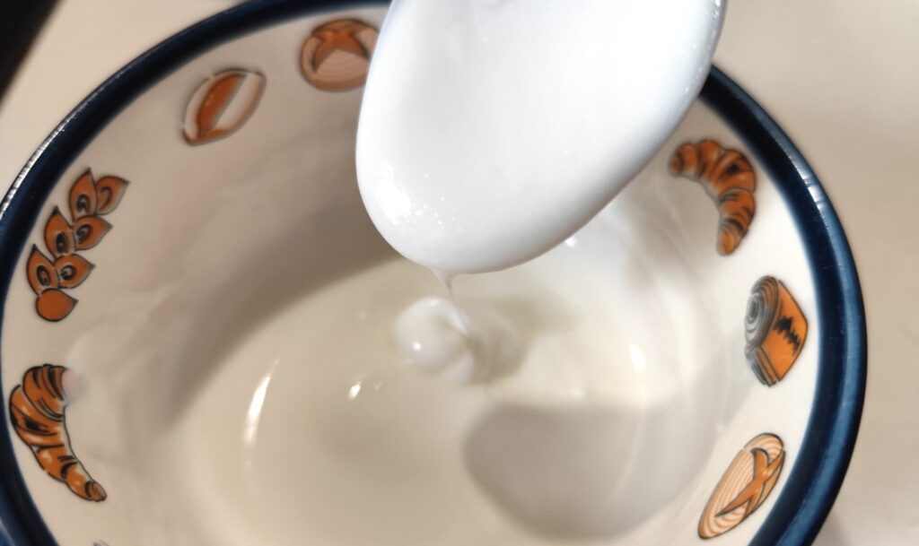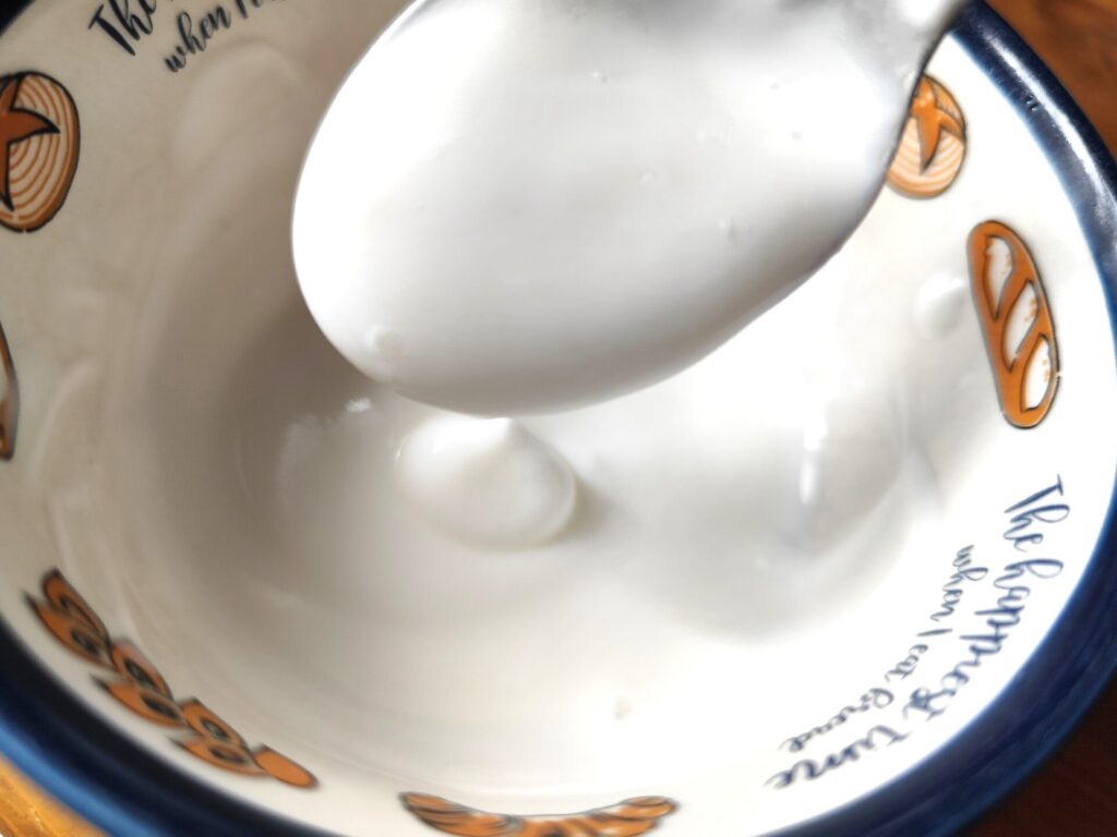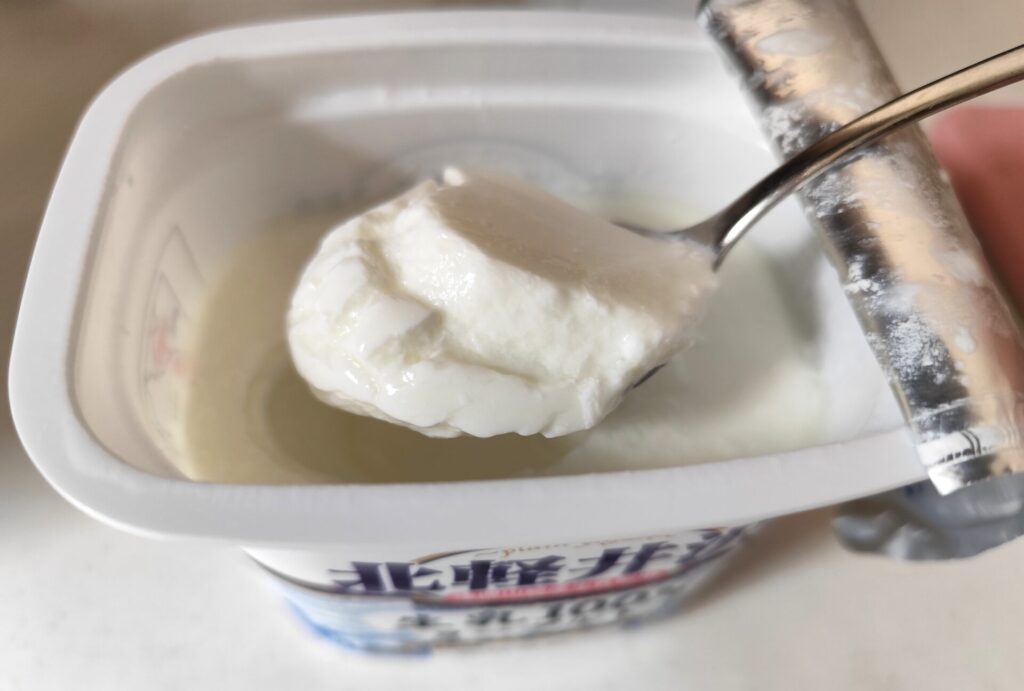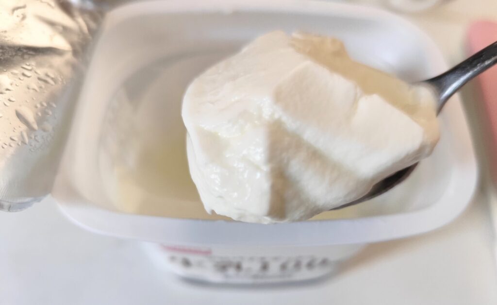すくった感じは、他の生乳100%ヨーグルトと比べると結構軽くて柔らかいです。するっとすくえちゃいます。