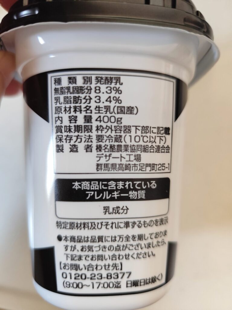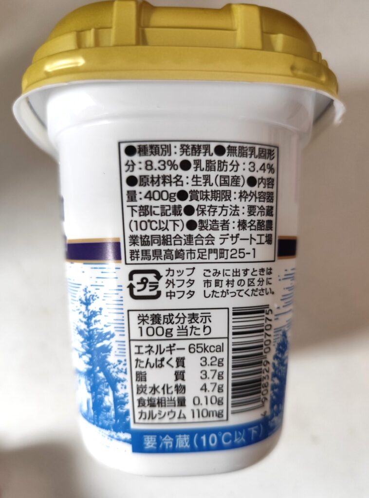 このヨーグルト、上のベルクPBヨーグルトと同じ『榛名酪農業協同組合』さん製造です。