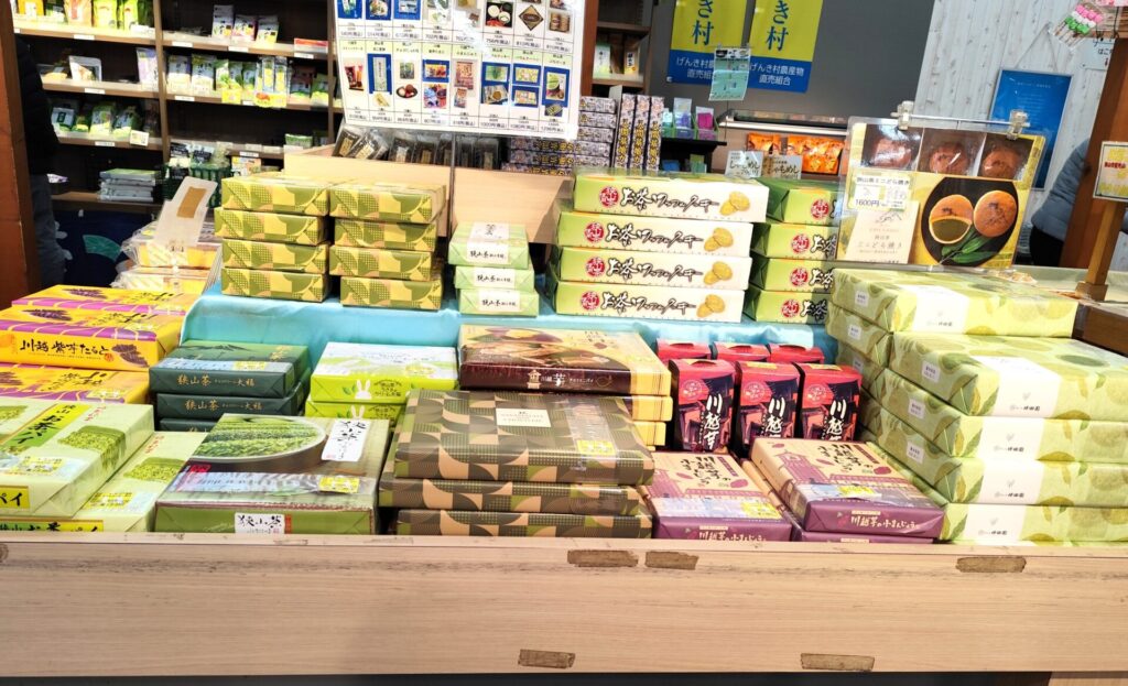 お土産用のお菓子もたくさんあります。埼玉らしいさつまいもや抹茶味が目立ちます。
