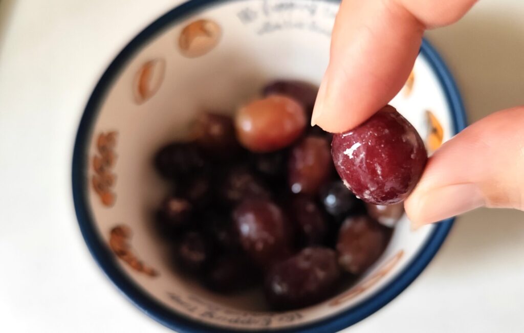 中身はパッケージに写っているぶどうと違って色も大きさもバラバラです。